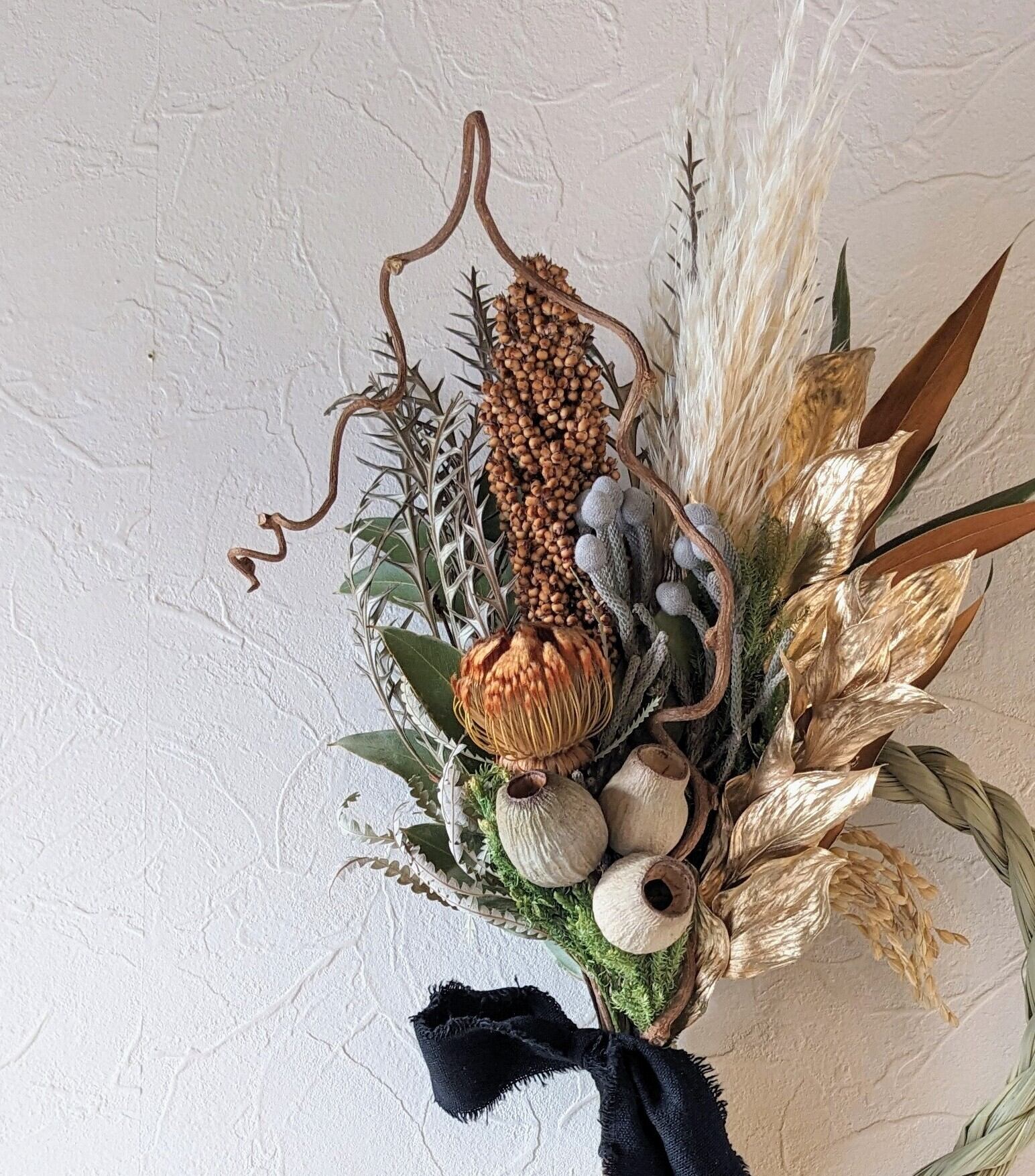 花日和のしめ飾りは縄部分とドライフラワーが取り外せり2wayタイプです