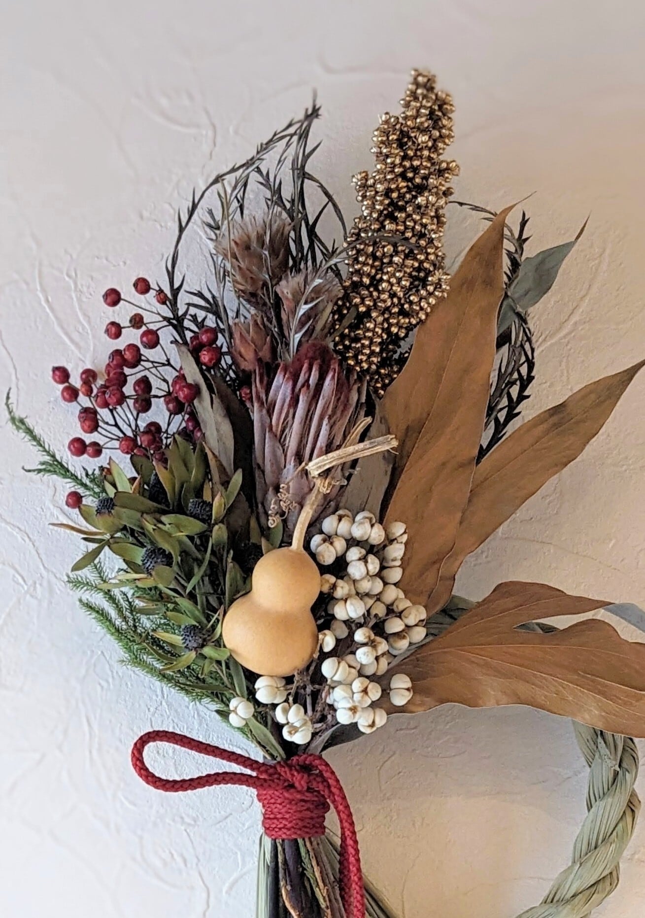 花日和のしめ飾りは縄部分とドライフラワーが取り外せり2wayタイプです